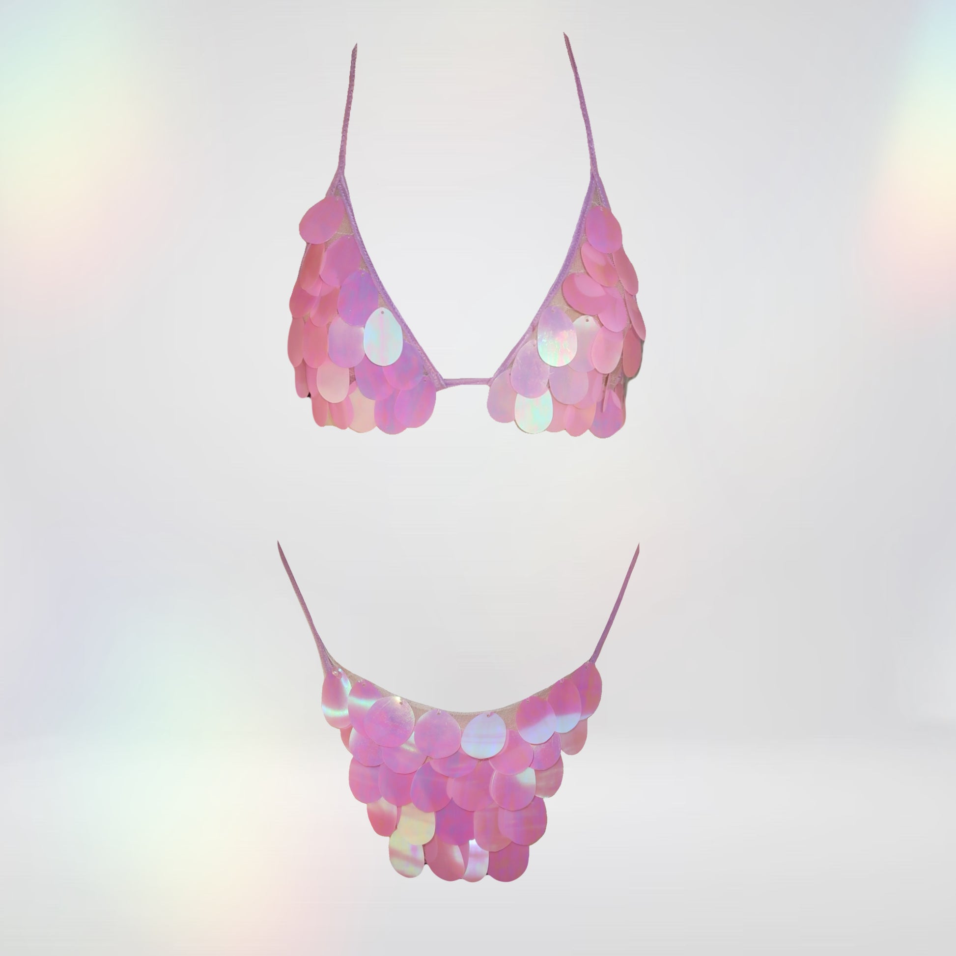 Introducing LICORNE! “Licorne” is a French term representing the most magical, mythical, and desirable animal in history. Of course we are referring to the one and only lé unicorn! Our baby pink iridescent piquet’s shimmer an array of pretty floral-like pastel hues that will make you feel like a fairytale princess in your own universe! Paired with a stretch-base lilac piping, our Licorne Bikini Set enables a soft princess-like girly aura that will twinkle across any crowd!